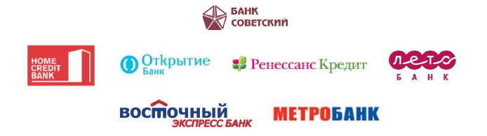 1. Банк Советский кредит плюс 6 банков партнеров.